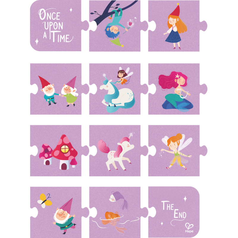 Vive la magia con este puzle multi-pack. Compuesto por 4 puzles separados de diferentes tamaños, permite al niño jugar y progresar en sus habilidades de resolución de problemas. Además de darle forma pieza a pieza a tu propio cuento de hadas con los puzles, también hay fichas de cuento para crear muchísimas historias basadas en el tema del rompecabezas.