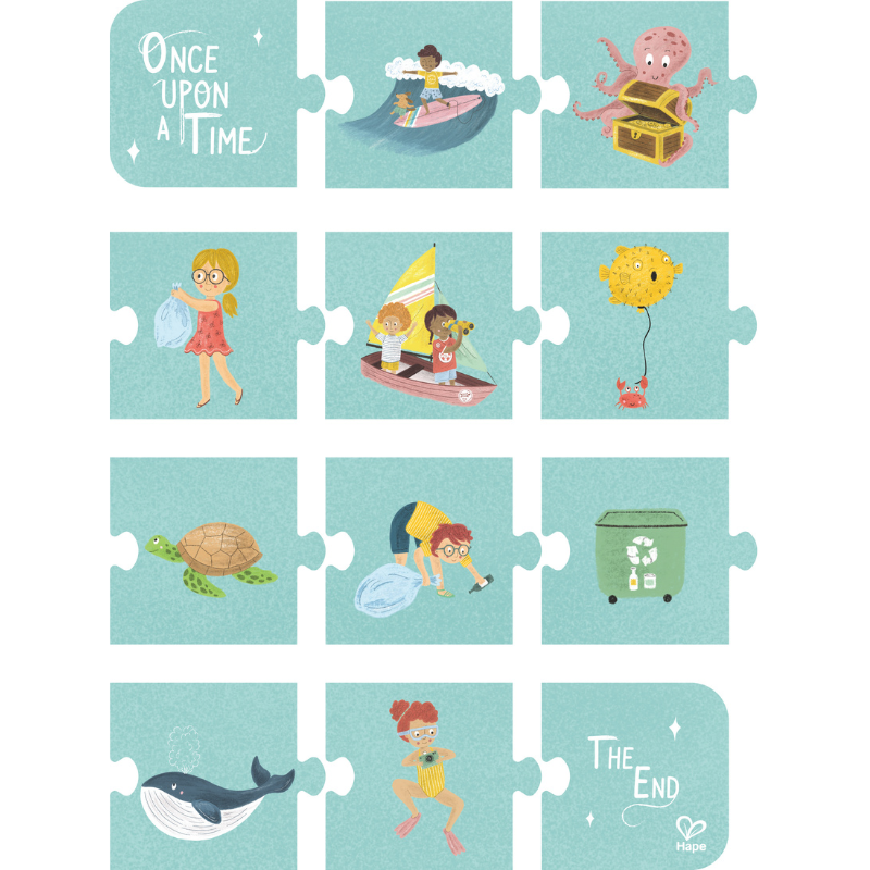 ¡Nada mejor que el sol, el mar y la arena! Con este puzle multi-pack puedes unir las piezas de una soleada imagen en la playa. Compuesto por 3 puzles separados, puedes montar tu propia historia frente al mar. También hay fichas de cuento para disfrutar de historias con infinitas variaciones.