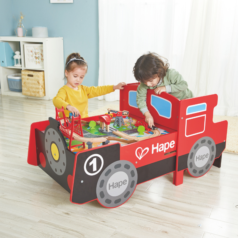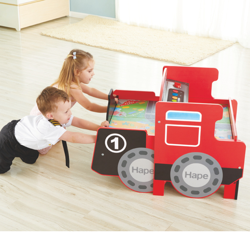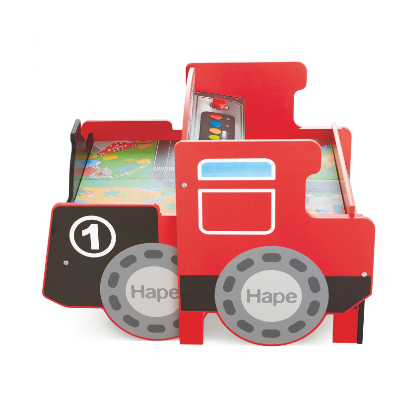 ¡Ahora podrás ser un maquinista y sentarte en el panel de control con sus divertidos efectos luminosos y sonoros, o mover el pequeño tren alrededor de la vía de la mesa de juego! Cuando termines de jugar ordena todo en la mesa y deslízalo dentro de la base para ahorrar espacio.