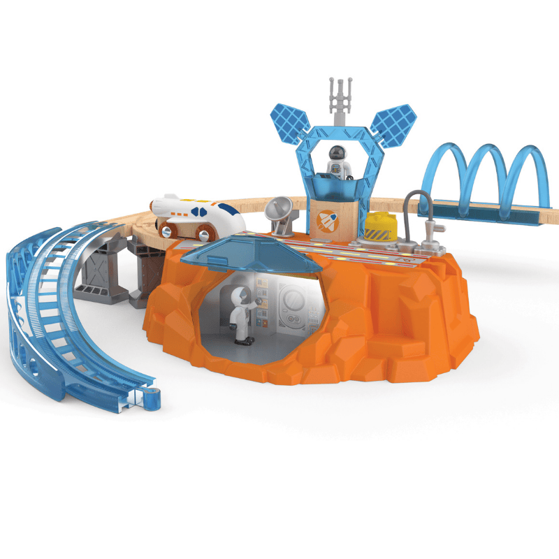 Despega y únete a la diversión interestelar con nuestro set de juego Exploración de Marte. Este set fusiona el ferrocarril y la exploración espacial y cuenta con figuras de astronautas, un laboratorio subterráneo y otros accesorios para el juego de rol. Con pegatinas que brillan en la oscuridad para personalizar sus vías, este set fomenta la capacidad de resolución de problemas, la creatividad y la curiosidad de los jóvenes astronautas.